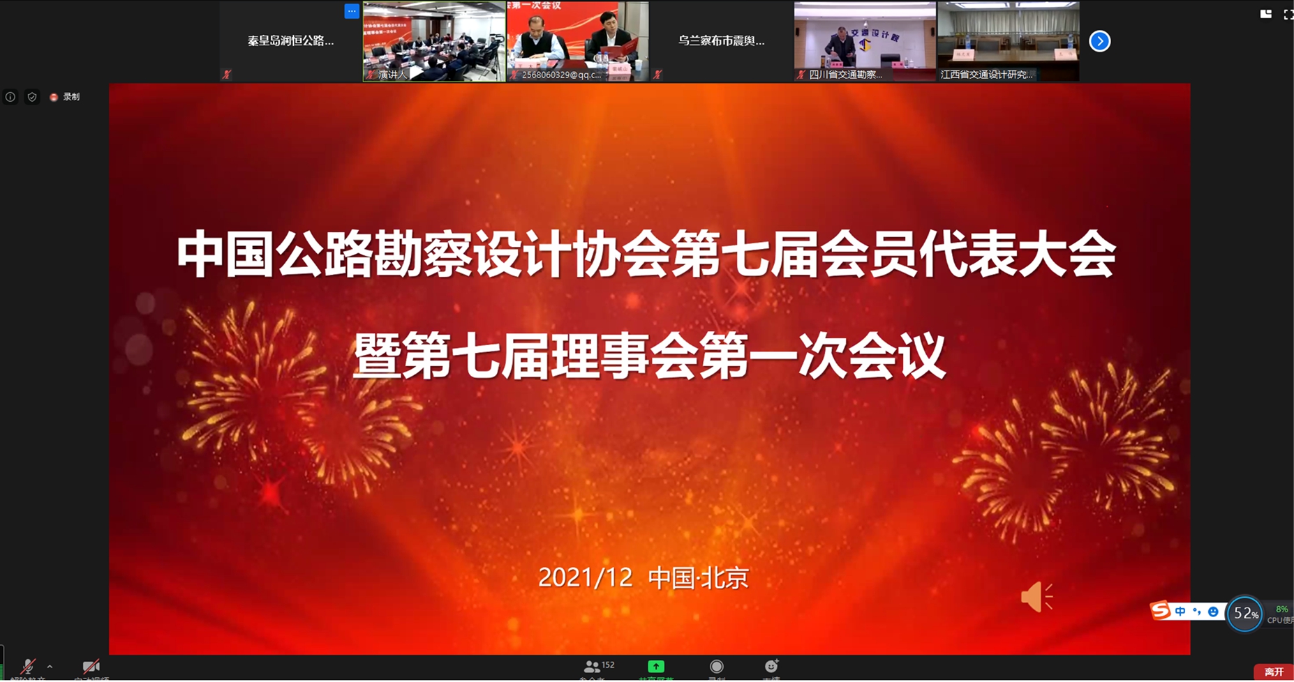 2021年12月11日上午,中国公路勘察设计协会第七届会员代表大会暨第七届理事会第一次会议采用线上线下相结合的方式成功召开。交通运输部公路局副局长王太、工程管理处处长王恒斌,中交集团党委常委、副总经理、第六届理事会理事长裴岷山等15人现场出席会议,来自全国各地的230多名代表在线上参加了本次会议。会议由中国公路工程咨询集团有限公司咨询、第六届理事会副理事长李志军主持。