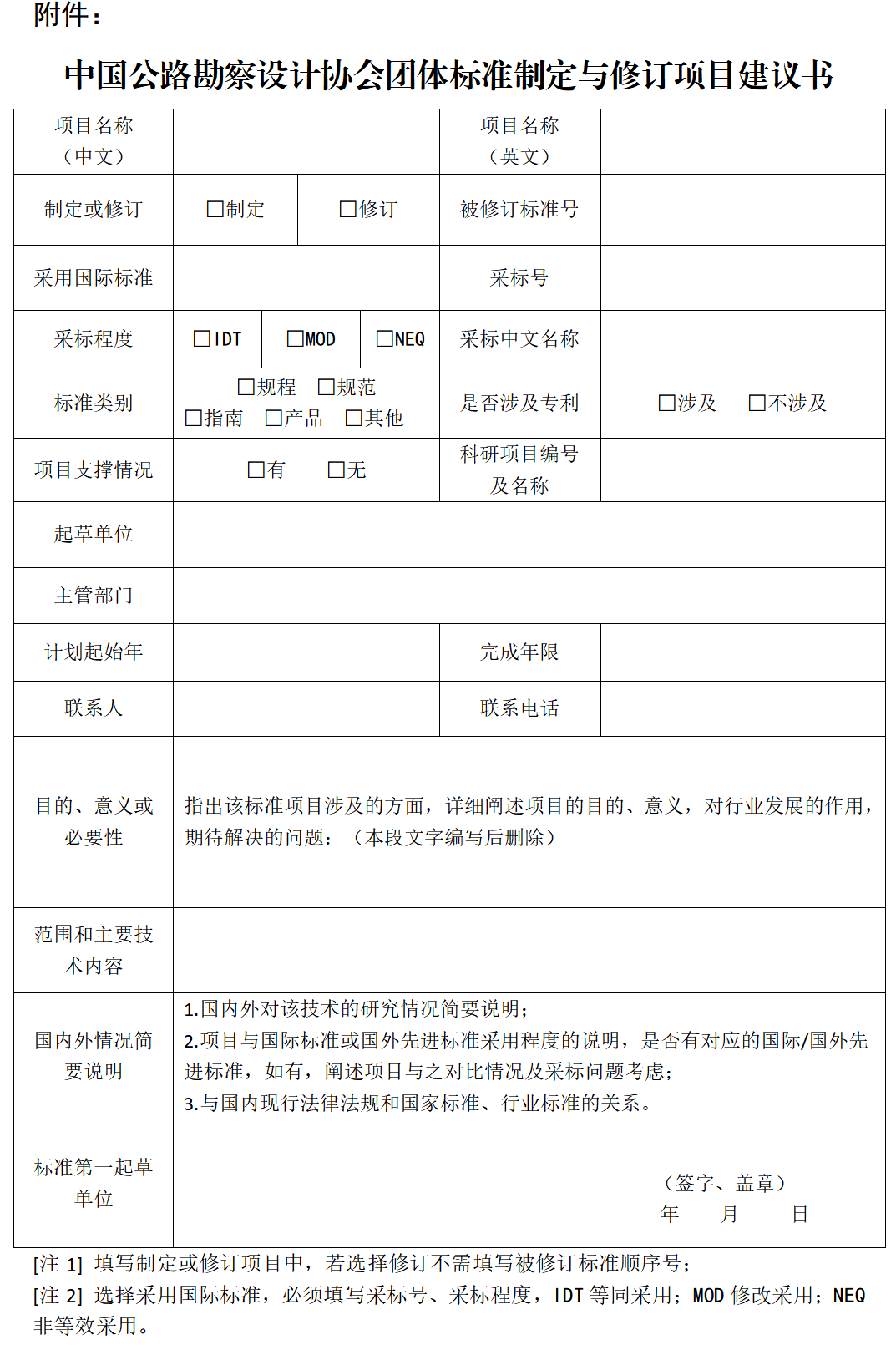 附件:《中国公路勘察设计协会团体标准制定与修订项目建议书》