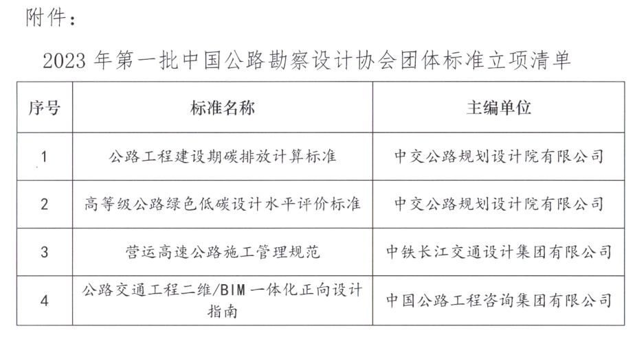 请各项目申报主编单位负责成立编写组,落实参编单位和主要起草人,按照《公路工程行业标准制修订管理导则》(JTG1002-2022)或《标准化工作导则第一部分:标准的结构和编写》(GB/1.1-2020)等相关要求,于2023年11月30日前完成标准初稿和编制说明的编写,报送中国公路勘察设计协会秘书处。