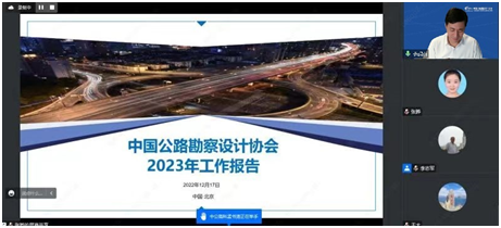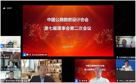 2022年12月17日,中国公路勘察设计协会七届二次理事会议成功召开。会议采取全部线上的方式,交通运输部公路局副局长王太、工程管理处副处长宾帆,中交集团党委常委、副总经理、中国公路勘察设计协会理事长裴岷山,来自全国各地的200多名会员代表在线上参加了本次会议,会议由中国公路勘察设计协会副理事长李志军主持。