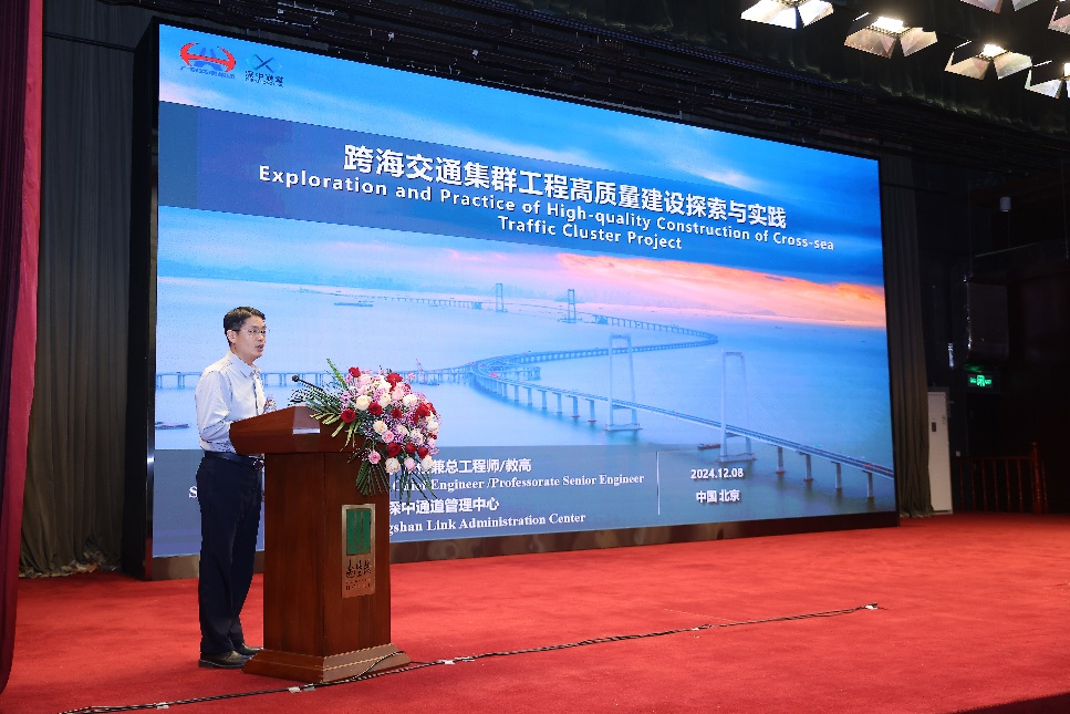 国家卓越工程师宋神友作了《跨海交通集群工程高质量建设探索与实践》的报告,以深中通道为例,介绍了项目概况、高质量建设目标及理念、高质量建设探索与实践,以及对深中通道建设工作的总结和对世界跨海峡工程建造的展望。
