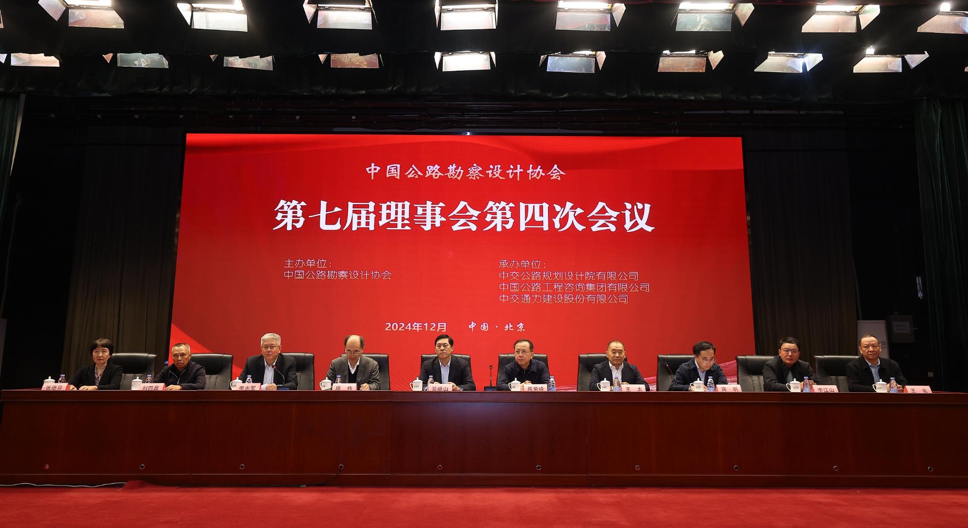 2024年12月8日,中国公路勘察设计协会第七届理事会第四次会议在北京召开,本次会议围绕构建安全、便捷、高效、绿色、经济、包容和韧性的可持续公路基础设施,研讨公路基础设施数字化转型和智能升级、跨产业融合和创新、科技发展赋能等,推进公路勘察设计高质量发展开展座谈研讨。会议邀请了交通运输部公路局局长周荣峰、工程管理处副处长宾帆,交通运输部原总工周伟、原副总工王玉、公路局原副局长王太等嘉宾,中国公路勘察设计协会理事长、中国交通建设集团有限公司党委常委、副总经理裴岷山,中国公路勘察设计协会副理事长李志军、李江山、刘四昌、王佐,监事长张德芬、秘书长张秀花及来自全国各地的90多家勘察设计单位近200位代表出席了本次会议。