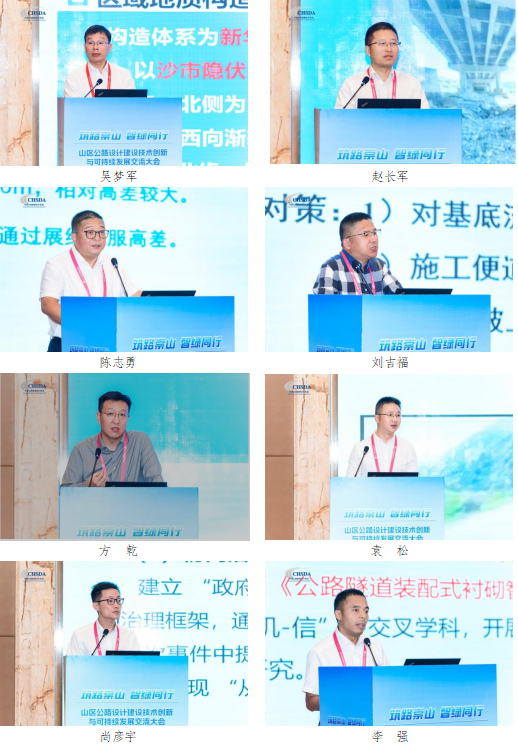 国家山区公路工程技术研究中心常务副主任吴梦军、浙江数智交院科技股份有限公司总工赵长军、苏交科集团股份有限公司技术质量安全中心副总工陈志勇、广东省交通规划设计研究院集团股份有限公司副总工刘吉福、江西省交通设计研究院有限责任公司分院院长方乾、四川省交通勘察设计研究院有限公司隧道与地下工程设计分院院长袁松、中铁二院工程集团有限责任公司公路市政院总工尚彦宇、中铁长江交通设计集团有限公司隧道所所长李强等专家围绕山区公路勘察设计创新、特长隧道设计、地质病害治理、防灾减灾、韧性提升、智慧技术等方面进行了深层次的技术交流,充分展示了大会设计技术创新与可持续发展的核心主旨。